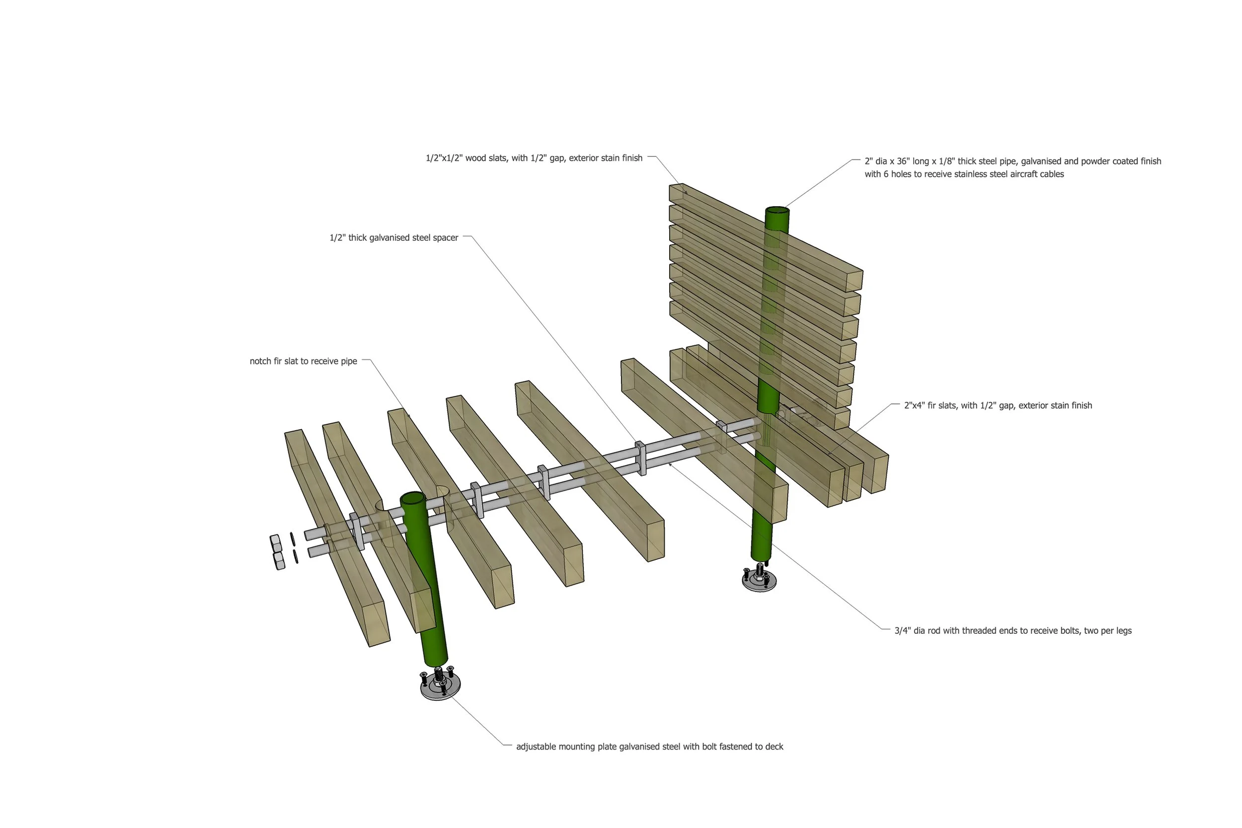 In Urban Pasture 2.0, the design team seeks to preserve those ideas already been proven successful, while exploring other untapped design potentials. These include modular construction, and a lighter, more transparent design that allows maximum permeability both viewing from the sidewalk and from across the street. Durability and ease of maintenance are drastically improved by the introduction of the galvanized steel platforms and bench substructure. A new sedum mix is added to the landscaping palette of native planting, reinforcing the original concept of a living oasis in the heart of the city.