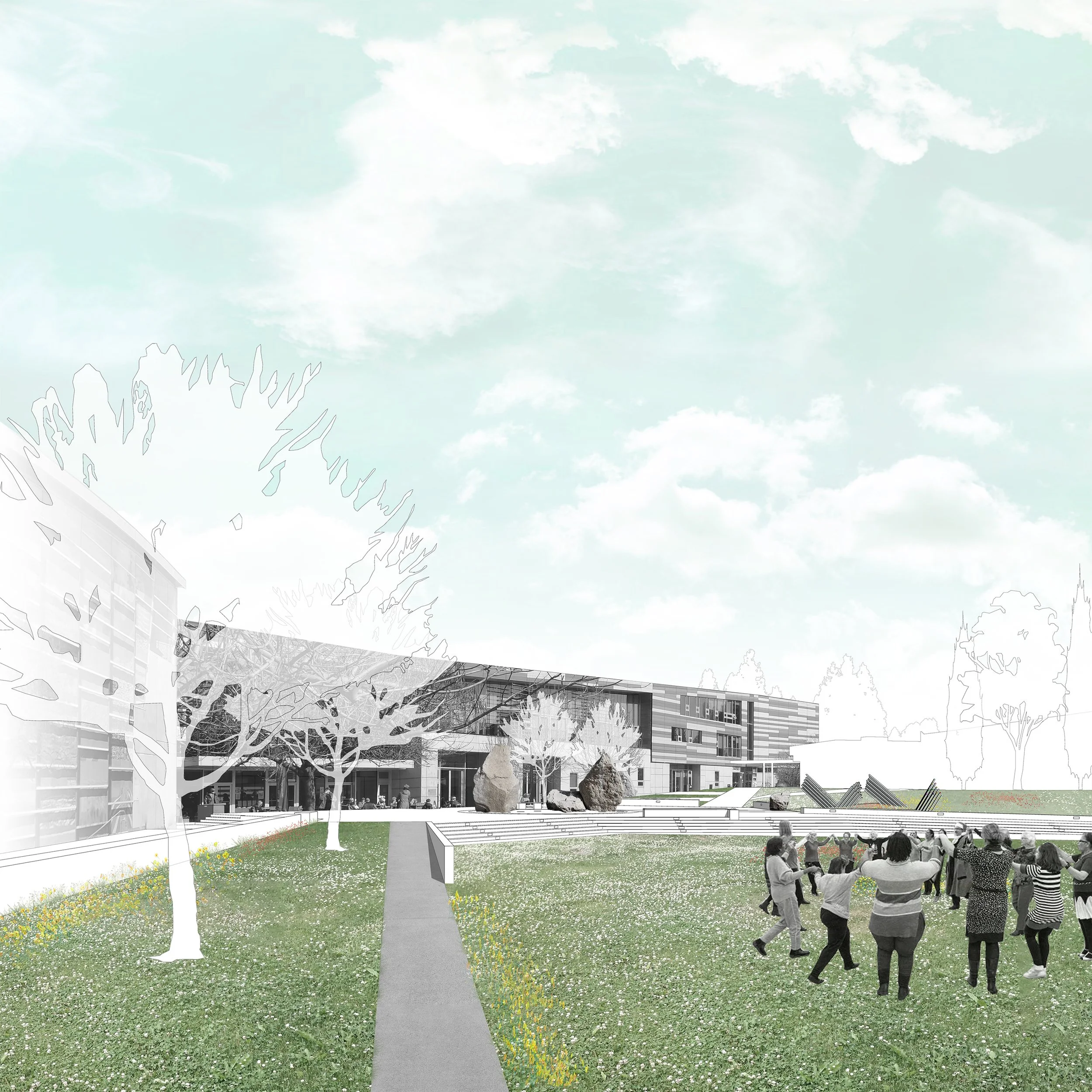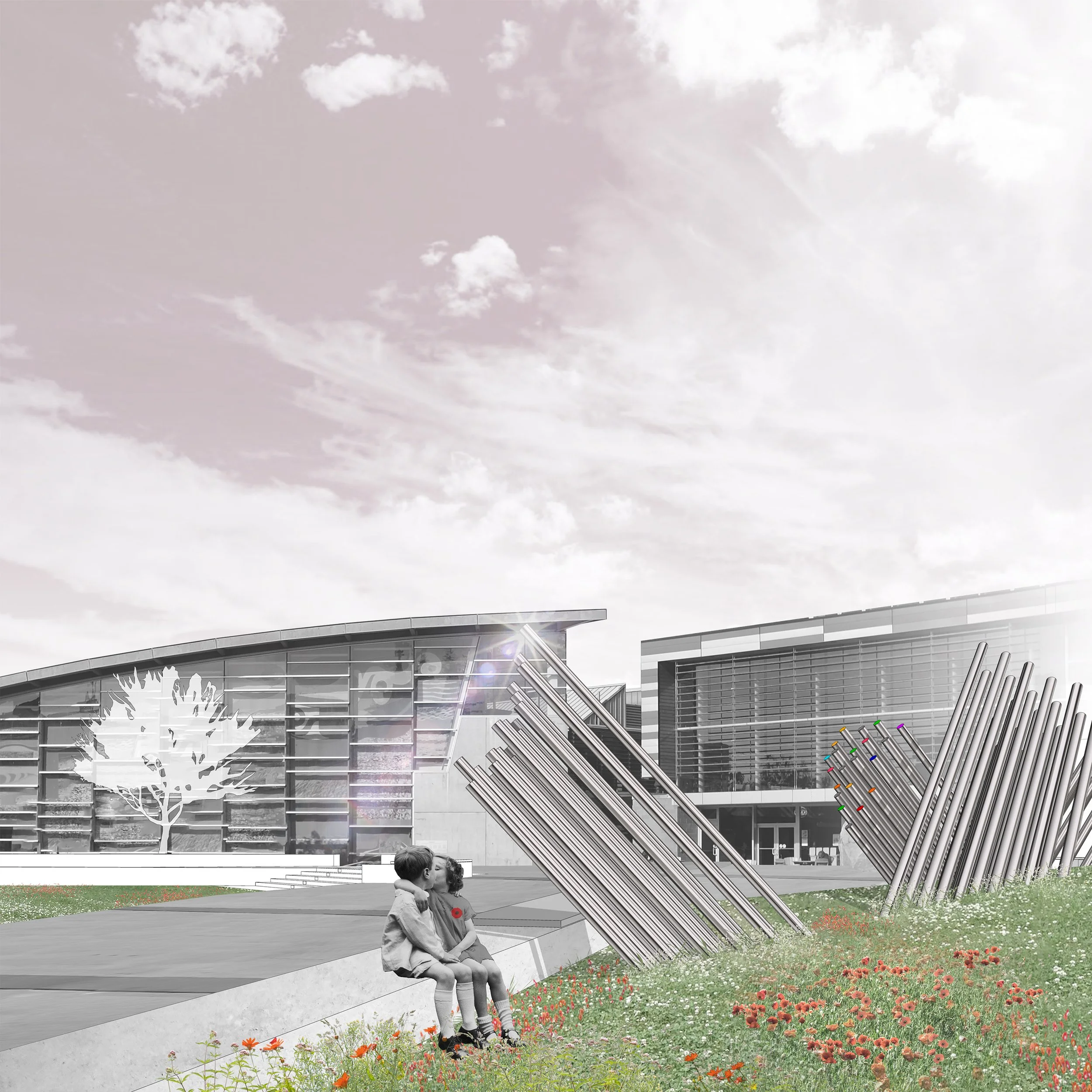 The public artwork will be located in front of the Seniors’ Activity Centre, at the terminus of the southeast promenade upon entering the plaza. By itself, it is both a landmark and a gateway, with an iconic form that embodies the universal value of unity. Contextually it is an extension of, as well as a counterpoint to, the existing rocks-and-water feature. Together they create a series of focal points stretching across the breadth of the plaza, thereby unifying the space and bringing the Seniors’ Activity Centre, its herb gardens and the grassy slope into the overall spatial composition.