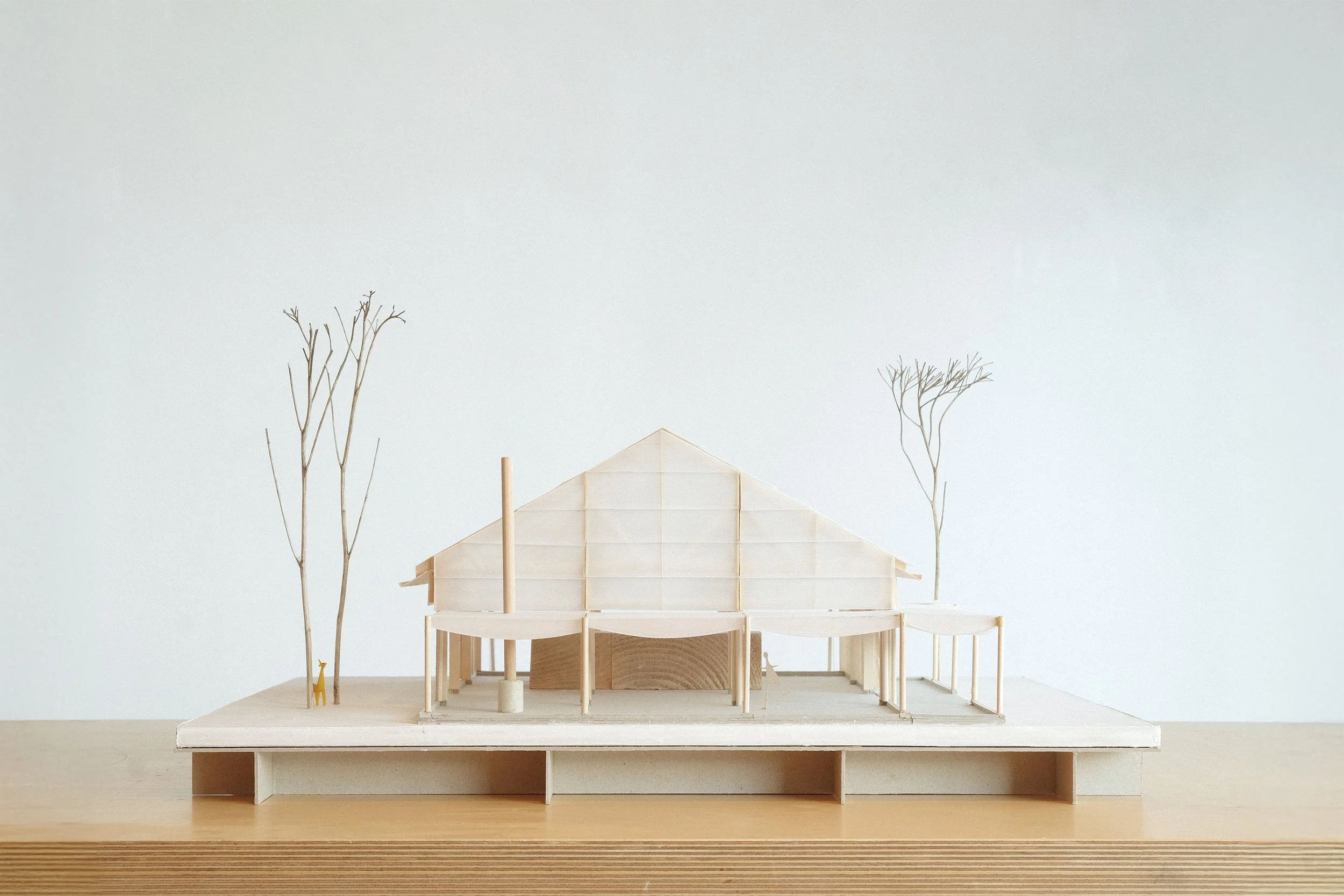 The delineation of the old and new is manifested both in massing, as well as in material expression. The building’s heritage is celebrated by means of a new, translucent cladding, given a subtle rendering of the original, heavy timber bone within the barn. On the other hand, the veranda is expressed as a lighter structure, formally and spatially in dialogue with the public realm as an interface. The draping swoop of the “tent-like” lower roof form introduces a more playful, festive geometry that echoes the water park to the east. Benches line the veranda facing both directions to further reinforce shared use between outside and inside. A fire stove with tall chimney anchors the west end, beckoning the more urban Old Bridge Road and serves as a hearth for the public.